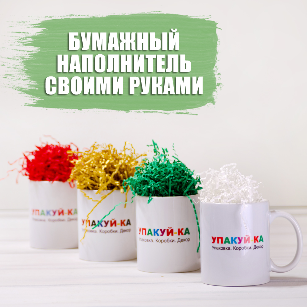 В "УПАКУЙ-Ке", как вы можете догадаться, мы не режем цветную бумагу ножницами на ленточки :) Наш наполнитель производится промышленным способом из экологически чистой бумаги, пригодной даже для соприкосновения с продуктами питания. И разрезан наш наполнитель идеально ровно, ширина резки 2 и 3 мм. А еще он волнистый, что придаёт ему дополнительный объём🎊