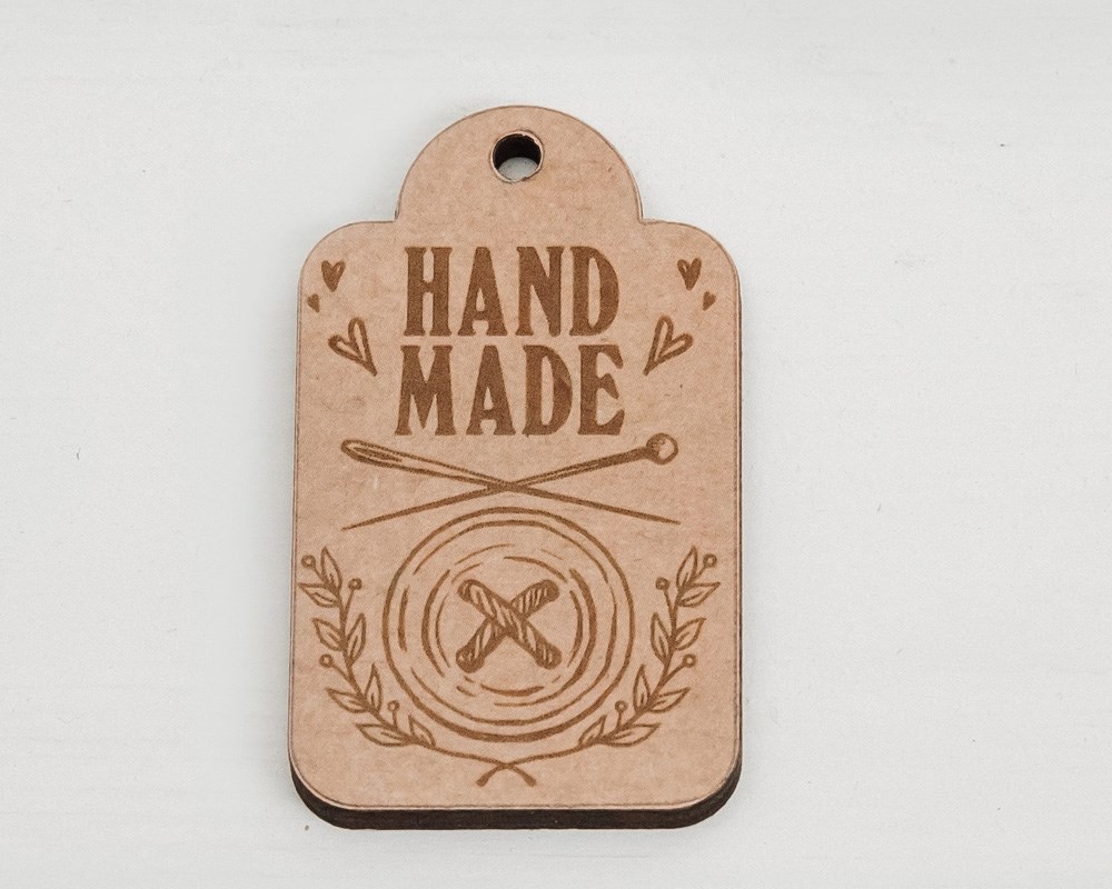 Бирка Hand Made с пуговкой, деревянная, 3х5 см, 1 шт.