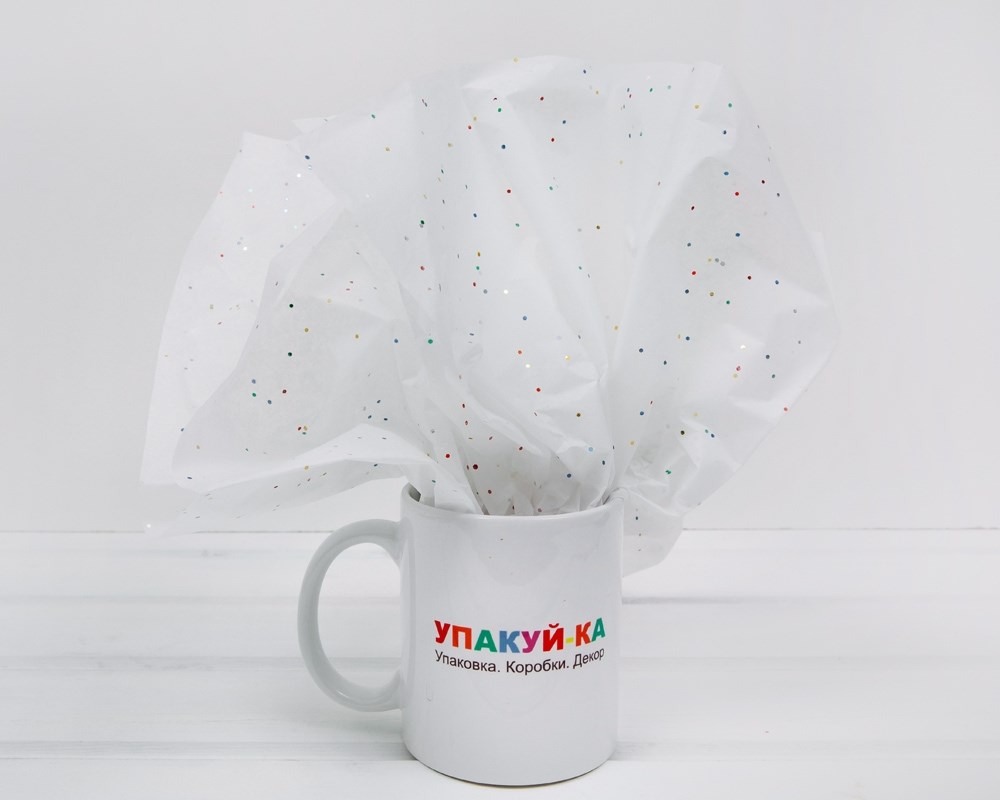 Бумага тишью, белая с цветным глиттером, 50х66 см, 1 лист