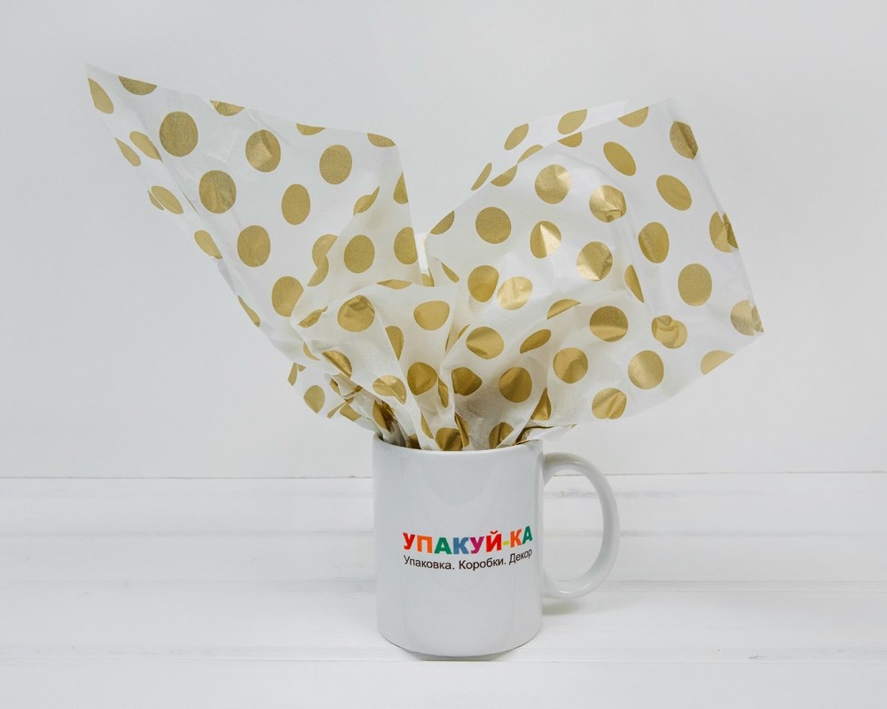 Бумага тишью, белая в золотой горох, 50х66 см, 1 лист