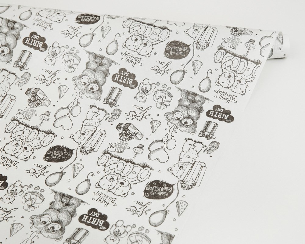 Бумага упаковочная, 50гр/м2, белые мишки, 72см х 10м, 1 рулон