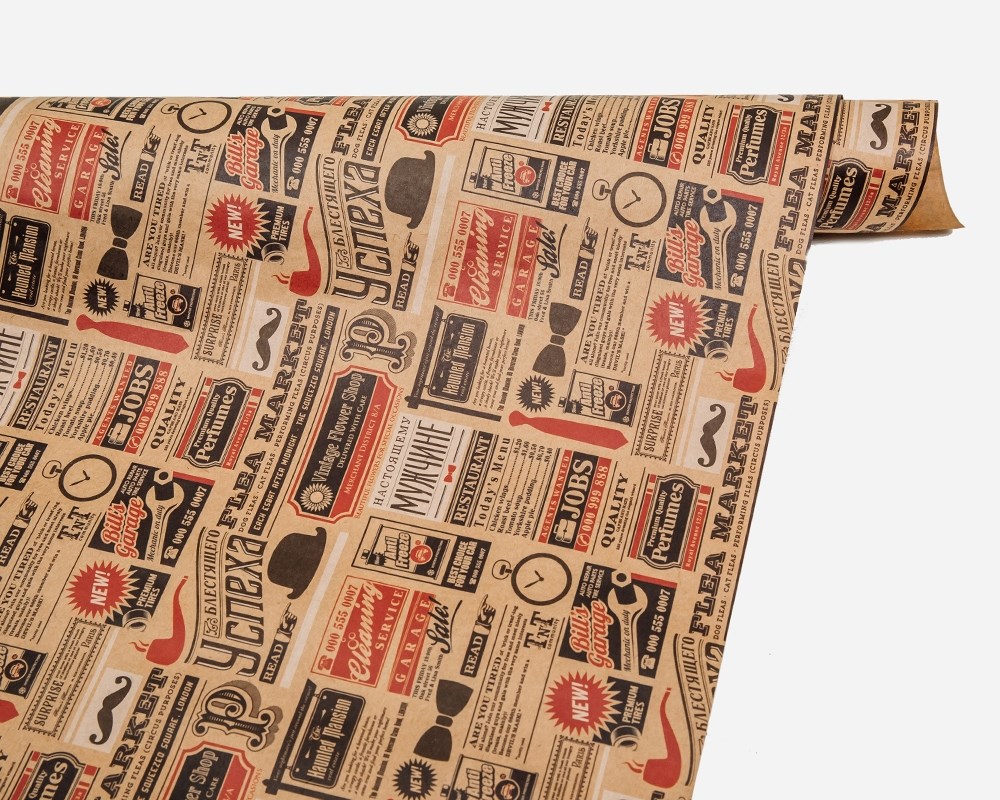 Бумага упаковочная, 50х70 см, «Газетные вырезки», 1 лист