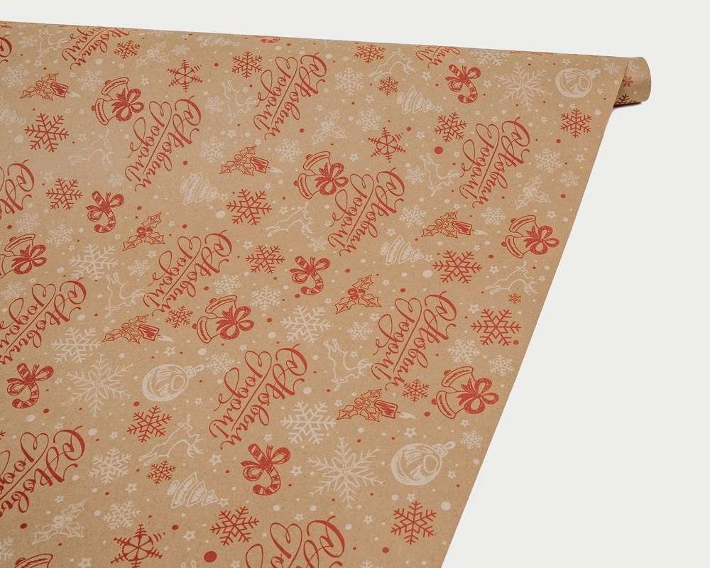 Бумага упаковочная, 60гр/м2, «С Новым Годом», 70см х 9м, 1 рулон