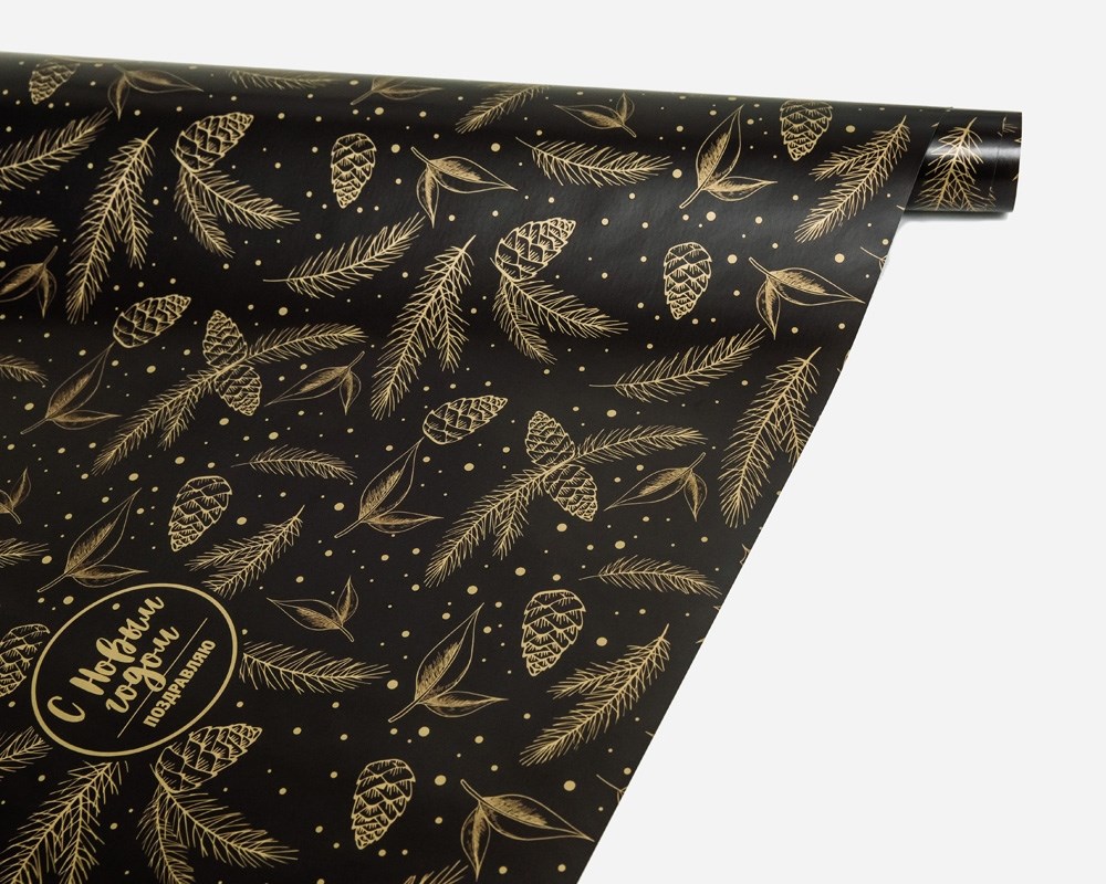 Бумага упаковочная, 70х100 см, «С Новым годом», золотая краска, 1 лист