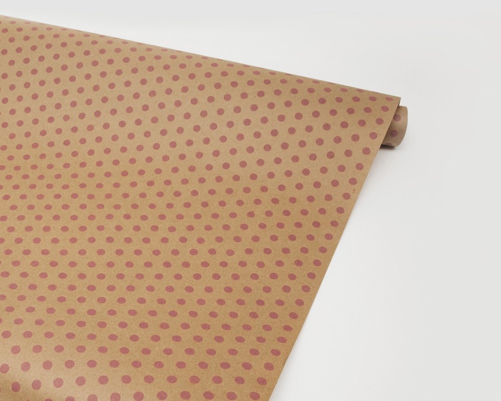 Бумага упаковочная, в розовый горошек, 70см х 10м, крафт, 1 рулон