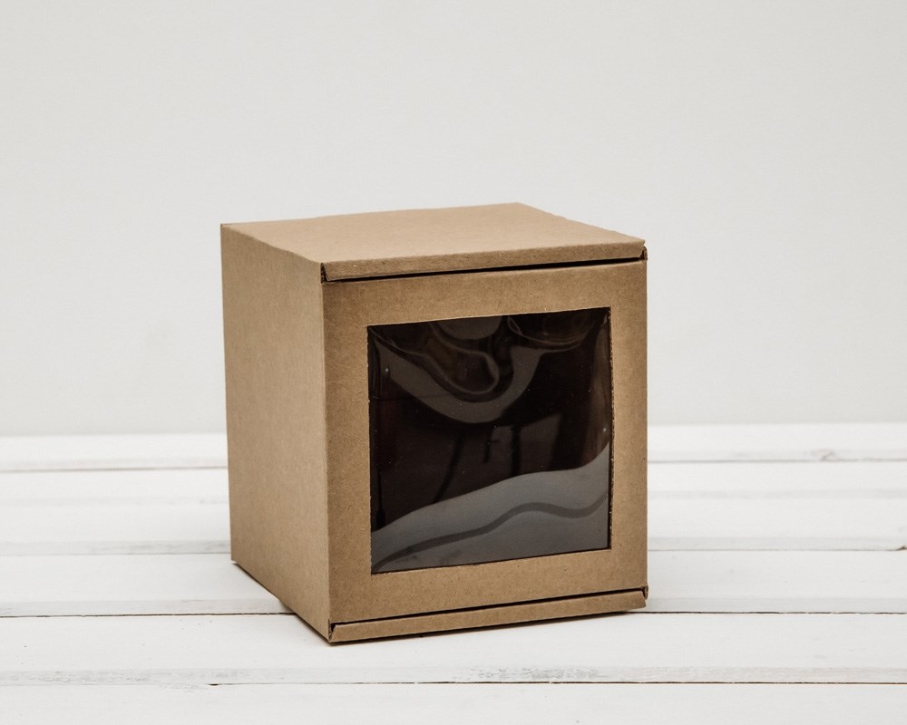 Коробка для одного ёлочного шара с окошком, 12х12х12 см, из плотного картона, крафт