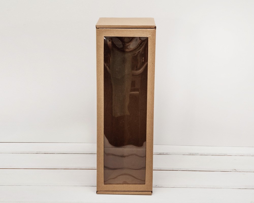 Коробка для трех ёлочных шаров с окошком, 36х12х12 см, из плотного картона, крафт