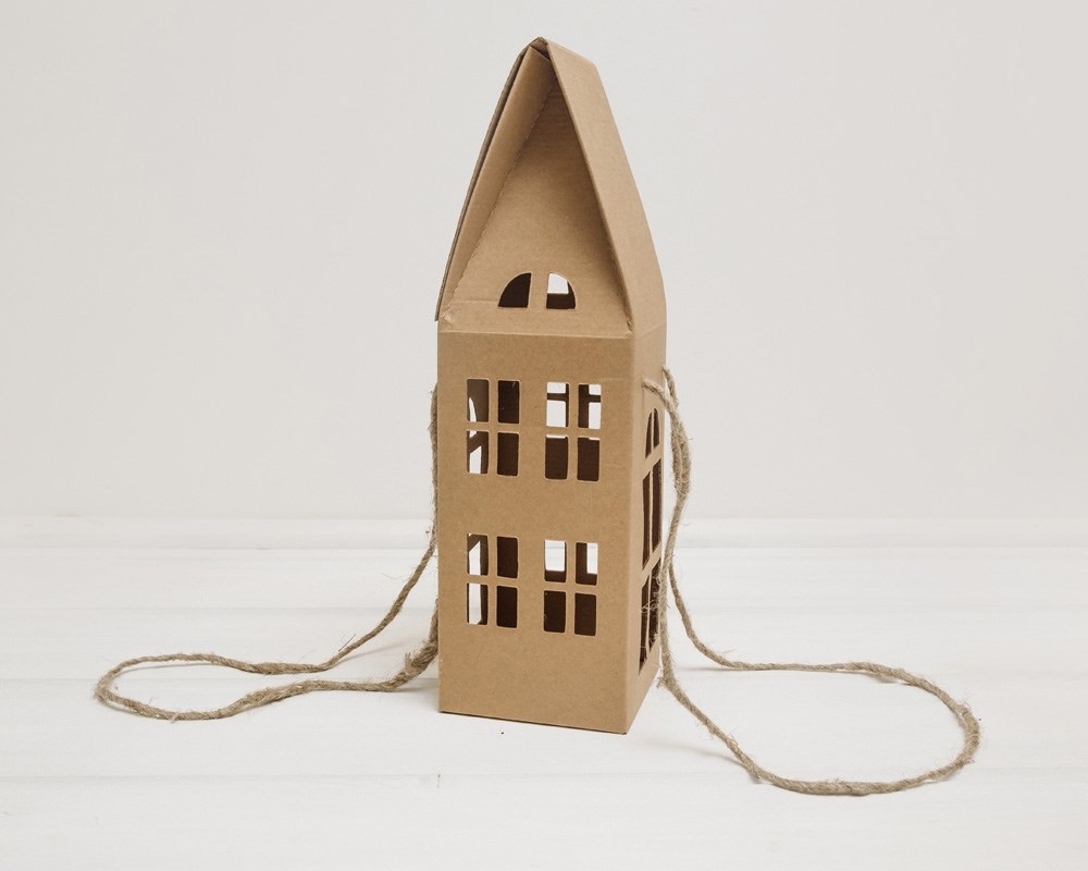 Коробка декоративная Домик с ручками и окошками, 11х11х37 см