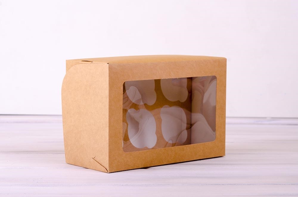 Коробка для капкейков/маффинов на 6 шт, 25х16х11 см, с прозрачным окошком, крафт