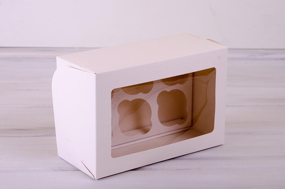 Коробка для капкейков/маффинов на 6 шт, 25х16х11, с прозрачным окошком, белая