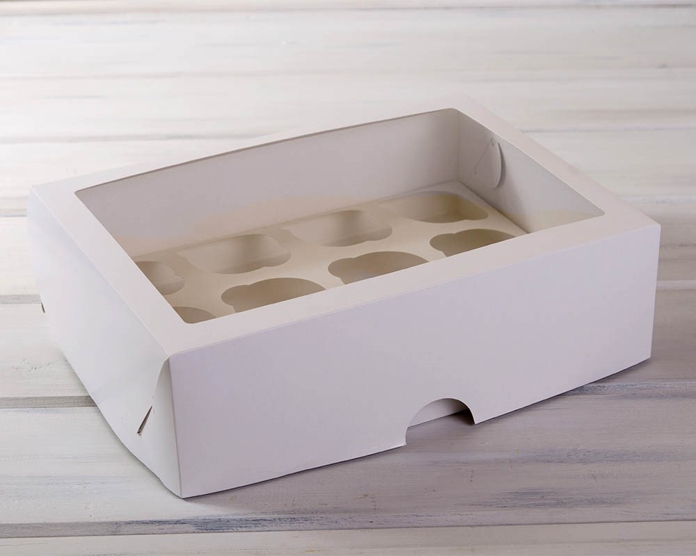 Коробка для капкейков/маффинов на 12 шт, с прозрачным окошком, 33х25х10 см, белая