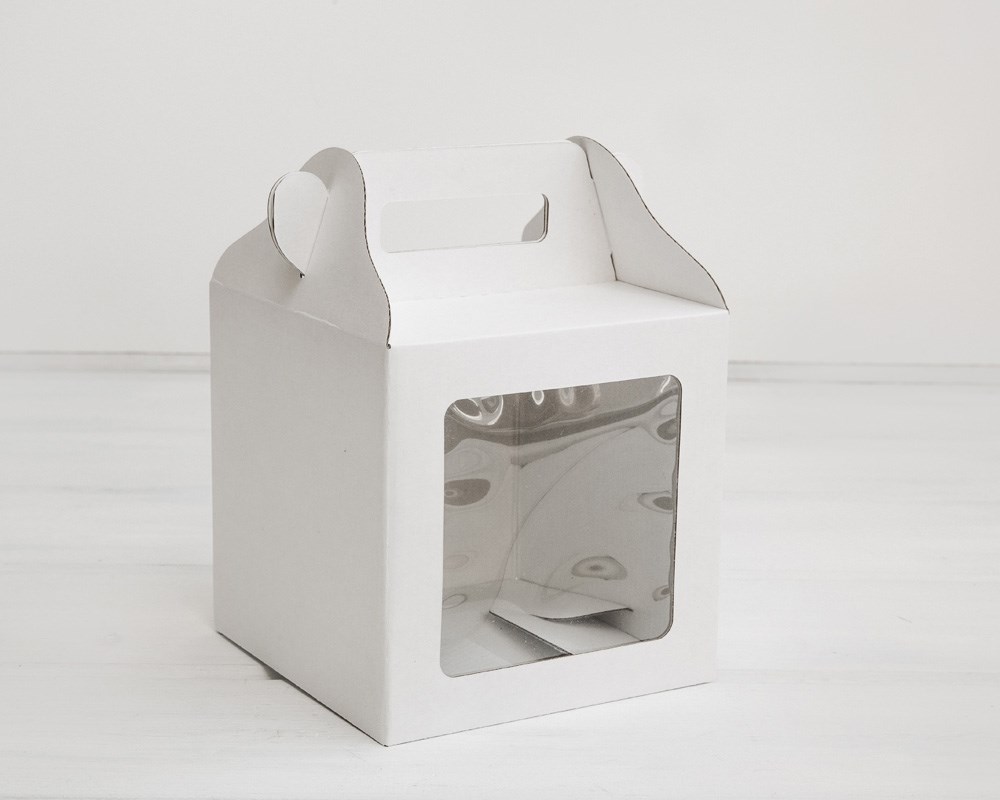 Коробка для кулича с окном и ручкой, 15х15х15 см, белая