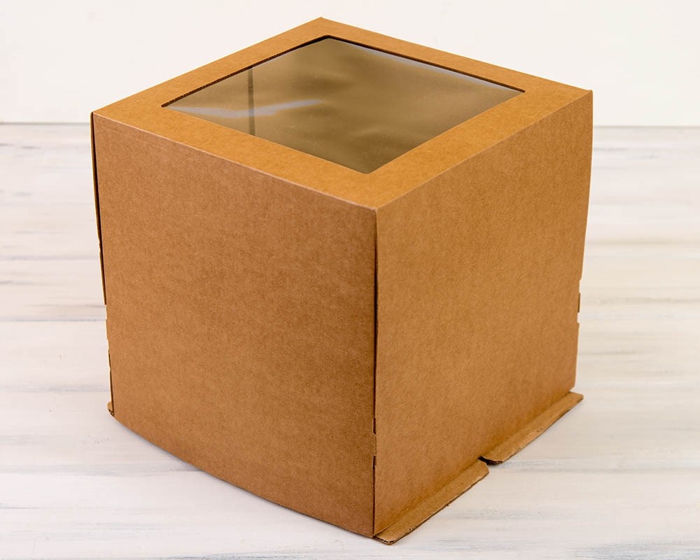 Коробка для торта от 1 до 5 кг, 30х30х30 см, с прозрачным окошком, d= 15-29 см, крафт