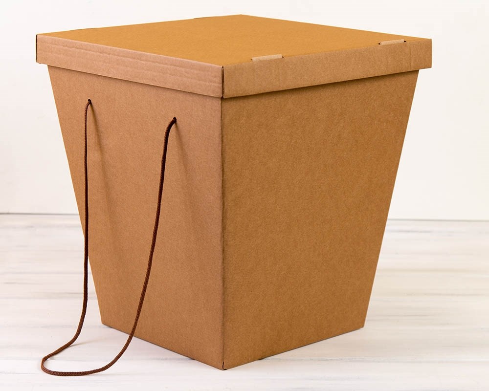 Коробка для цветов трапециевидная, низ 27 см, верх 38 см, высота 42 см, с крышкой, крафт