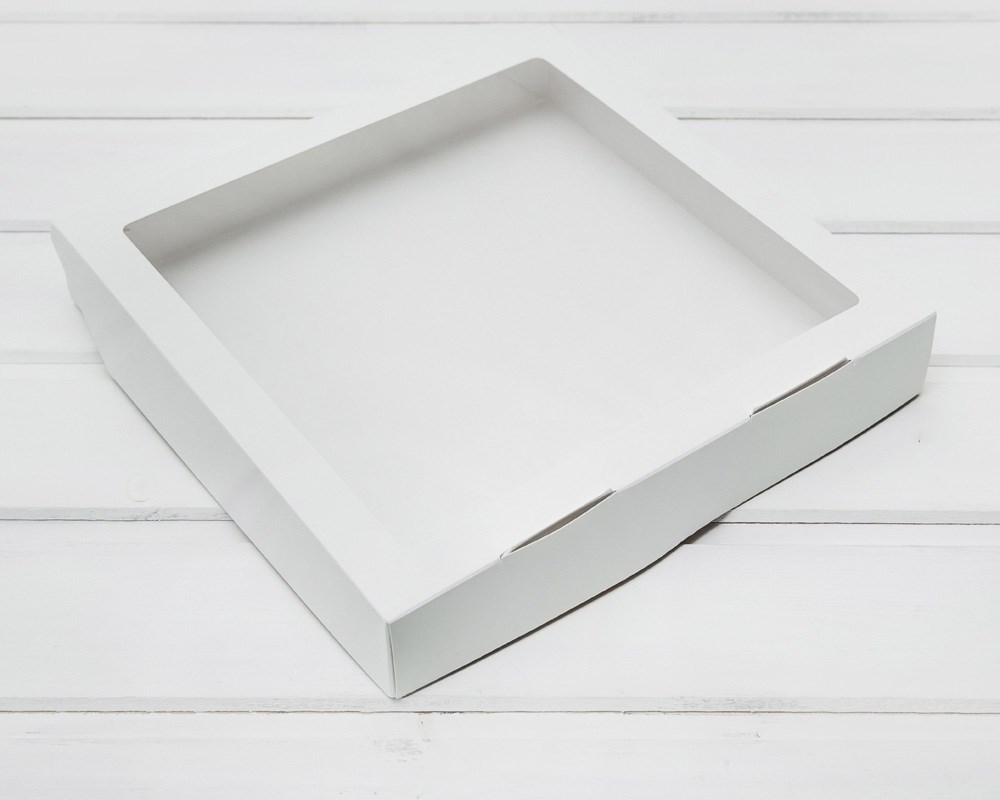 Коробка для выпечки и пирожных, 25,3х25,3х4,3 см, с прозрачным окошком, белая