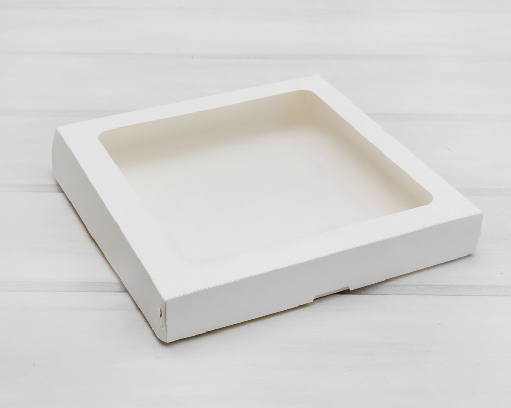 Коробка для выпечки и пирожных, 26х26х4 см, с прозрачным окошком, белая