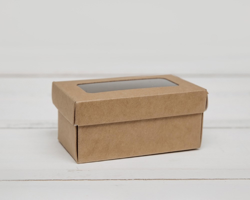 Коробка маленькая с окошком, 7,5х4х3,5 см, крышка-дно, крафт