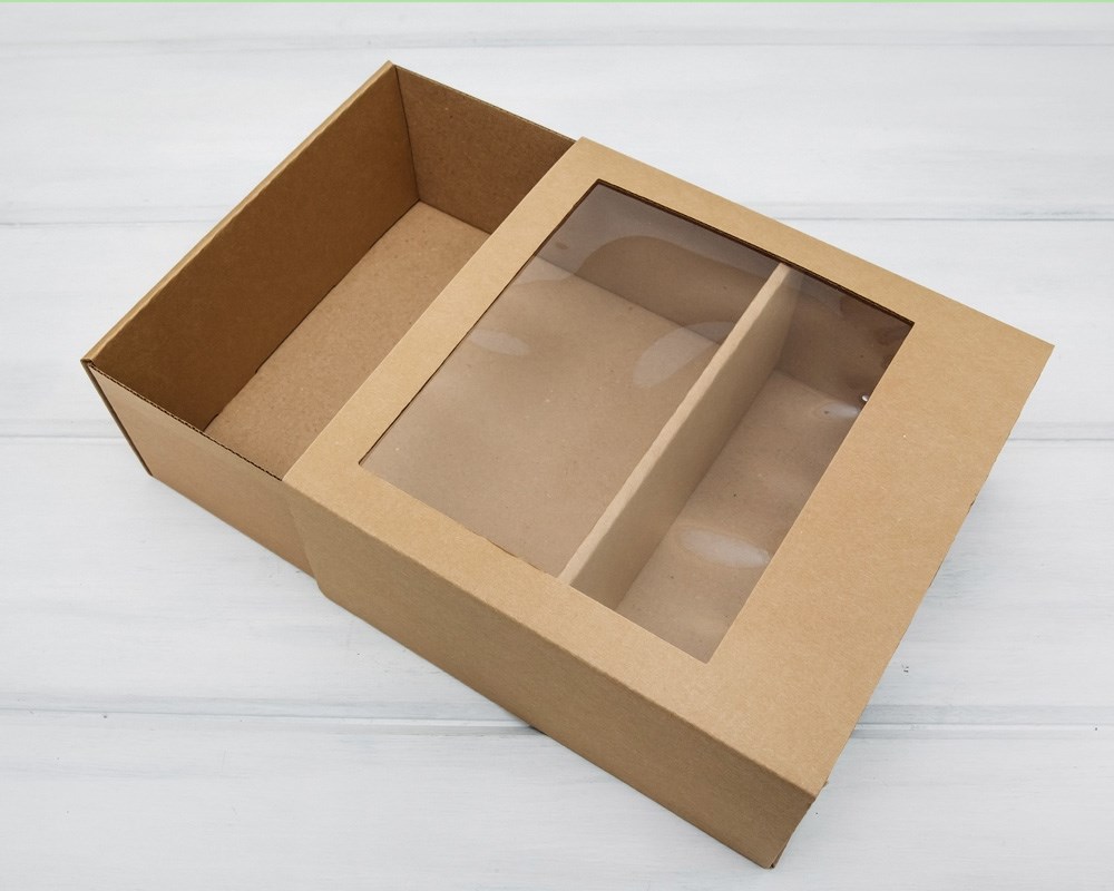 Коробка-пенал c окошком, 20х20х9 см, крафт
