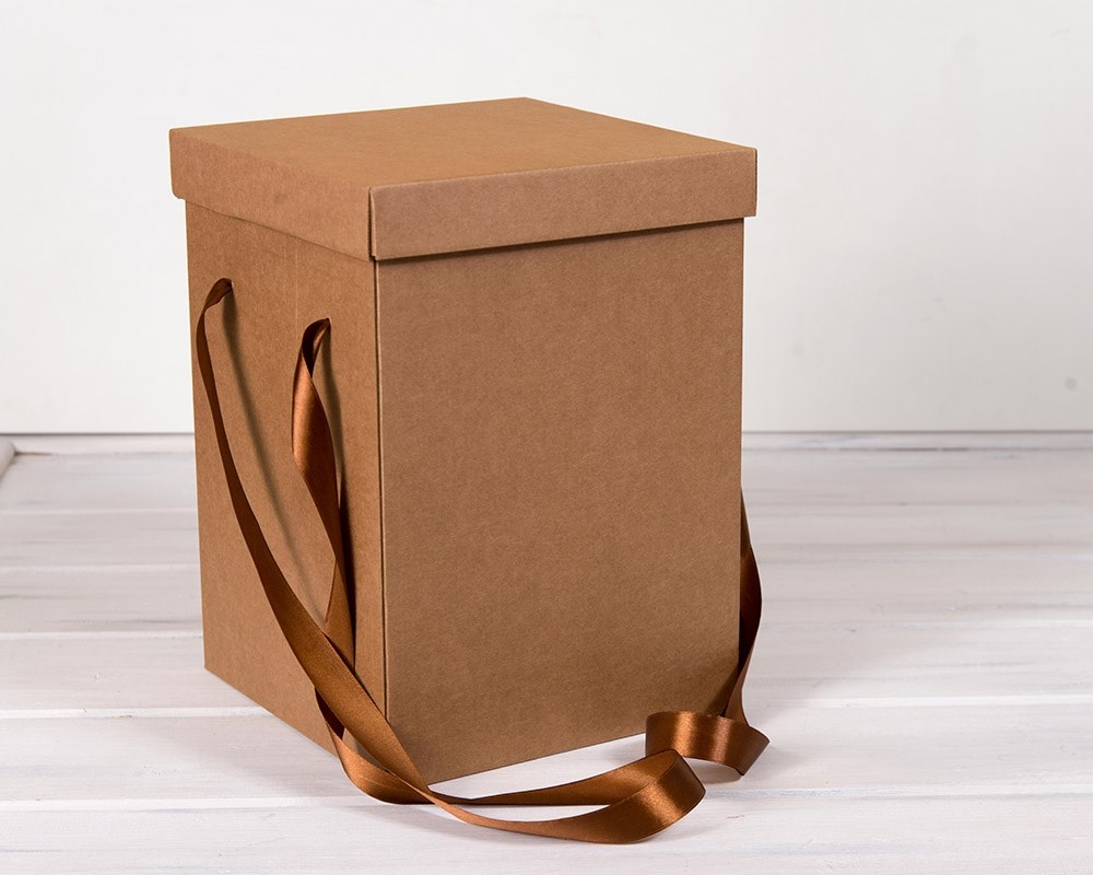 Коробка подарочная для цветов, 23х23х32,5 см, с крышкой, крафт