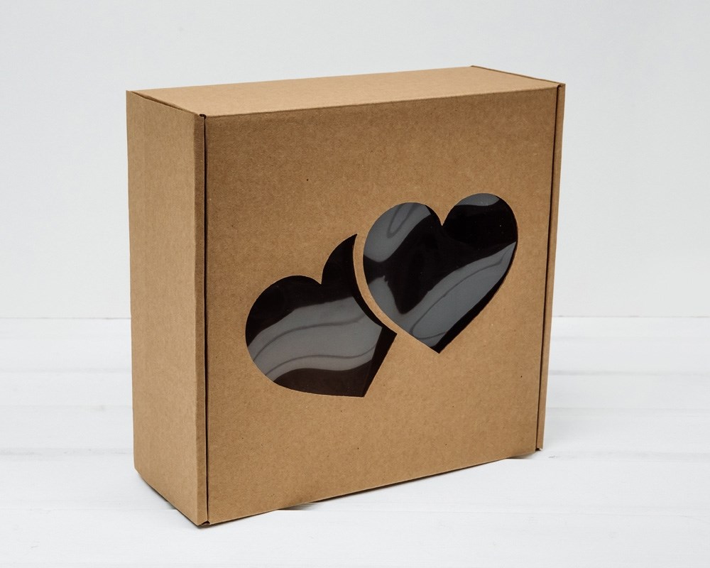 Коробка подарочная с окошком «Два сердца», 25х25х10 см, крафт