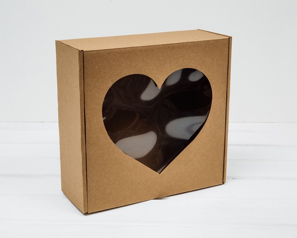 Коробка подарочная с окошком «Сердце», 25х25х10 см, крафт