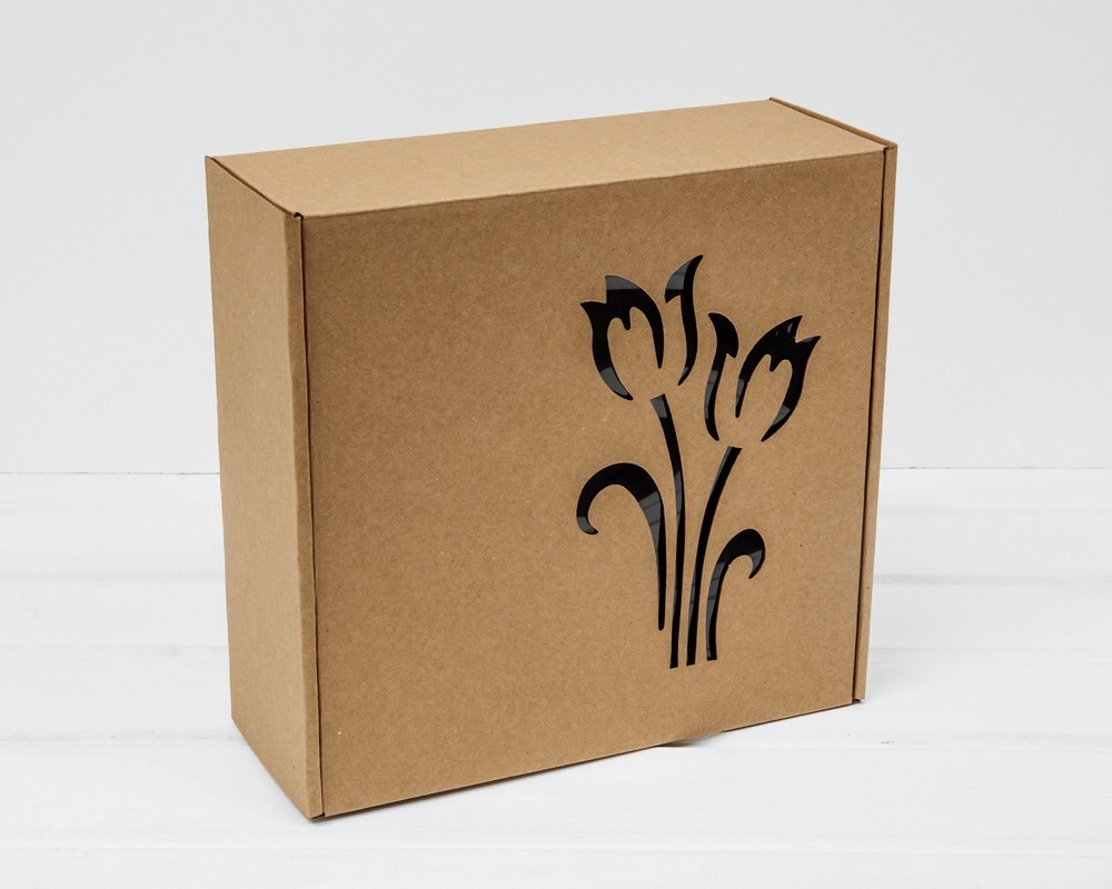Коробка подарочная с окошком «Тюльпаны», 25х25х10 см, крафт