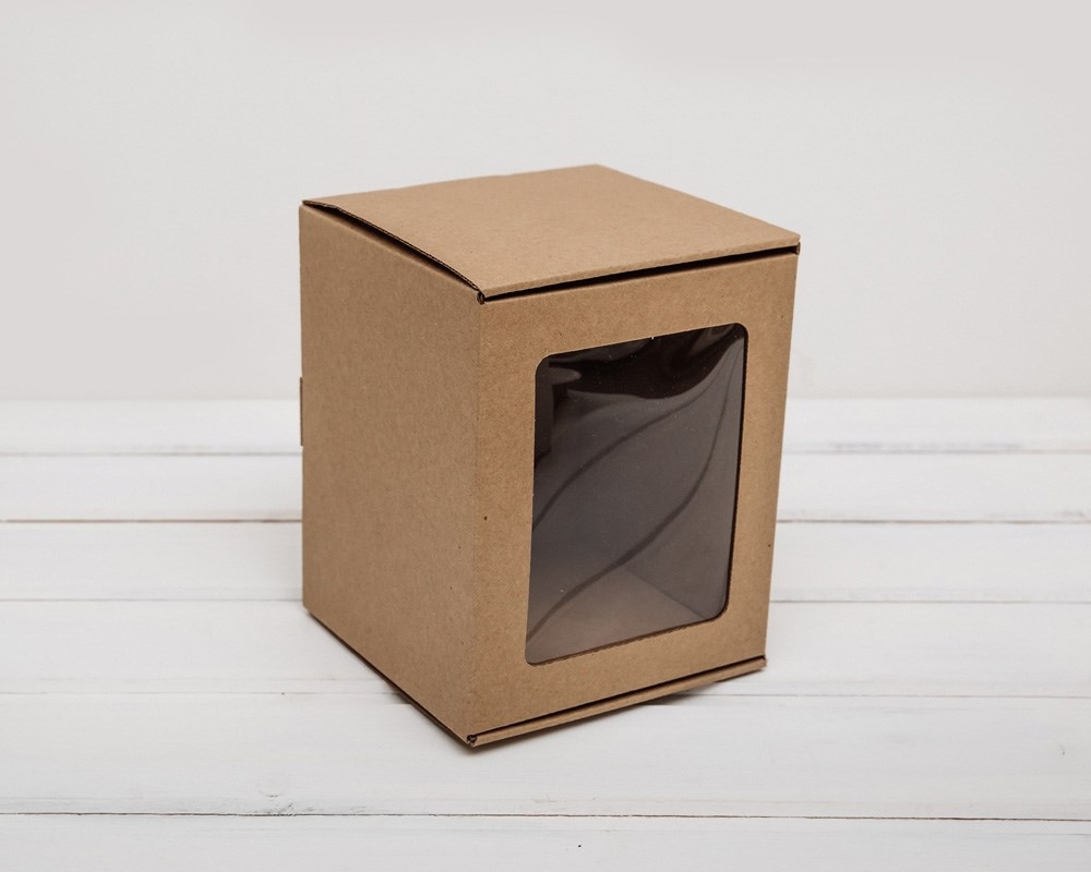 Коробка с окошком, 14х14х17 см, из плотного картона, крафт