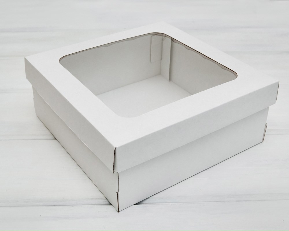 Коробка с окошком, 25х25х10 см, крышка-дно, белая
