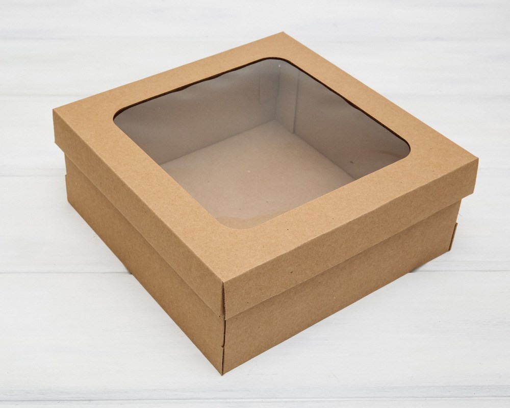 Коробка с окошком, 25х25х10 см, крышка-дно, крафт