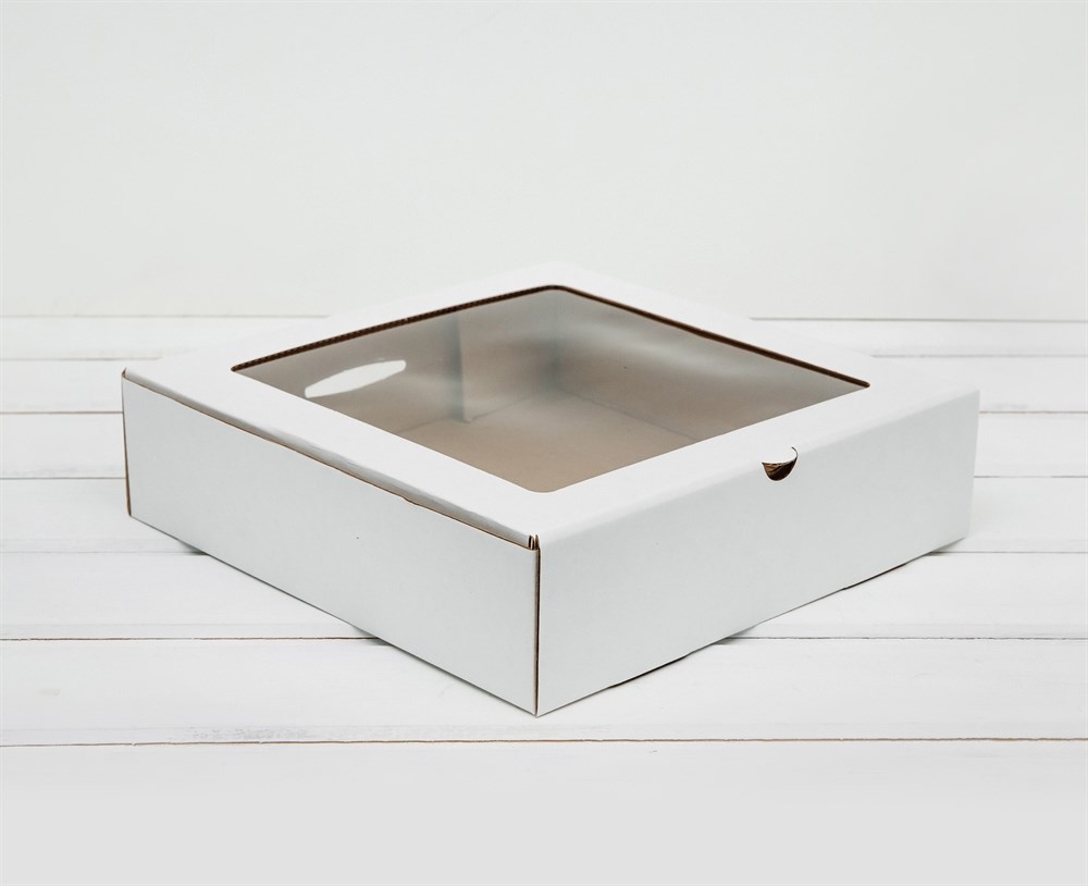 Коробка с окошком, 25х25х6,5 см, белая