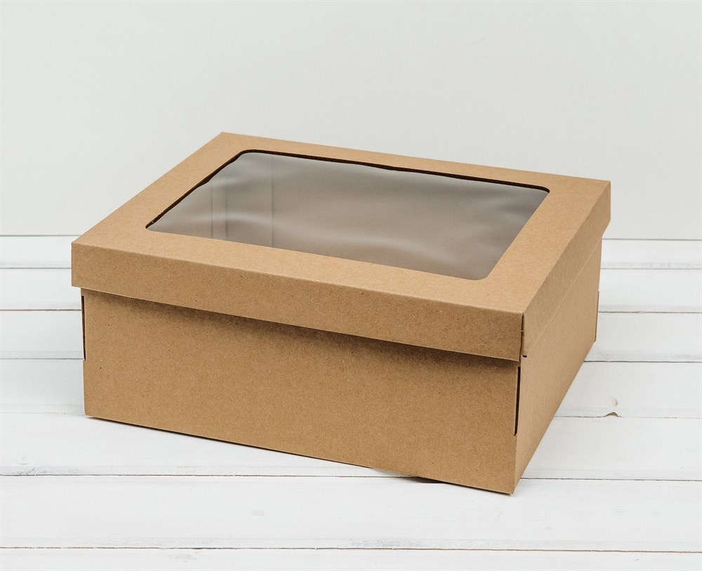 Коробка с окошком, 29х24х12 см, крышка-дно, крафт