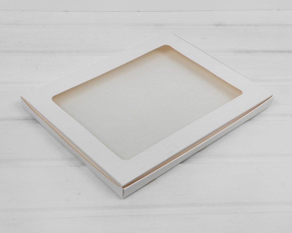 Коробка с окошком 30,1х23,2х1,9 см из мелованного картона, белая