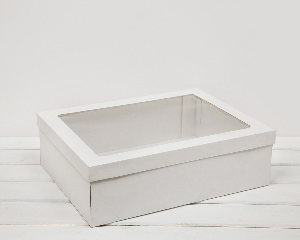 Коробка с окошком, 40х30х12 см, крышка-дно, белая