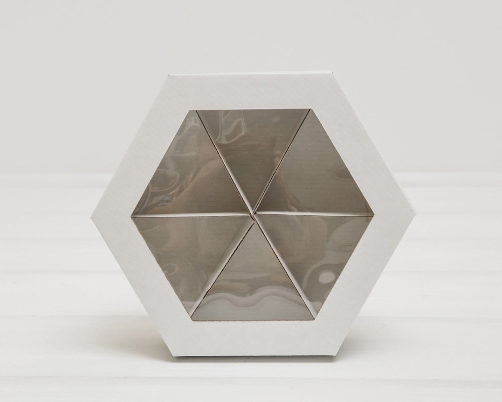 Коробка шестигранная с окошком, 22х19х5,5 см, крышка-дно, белая