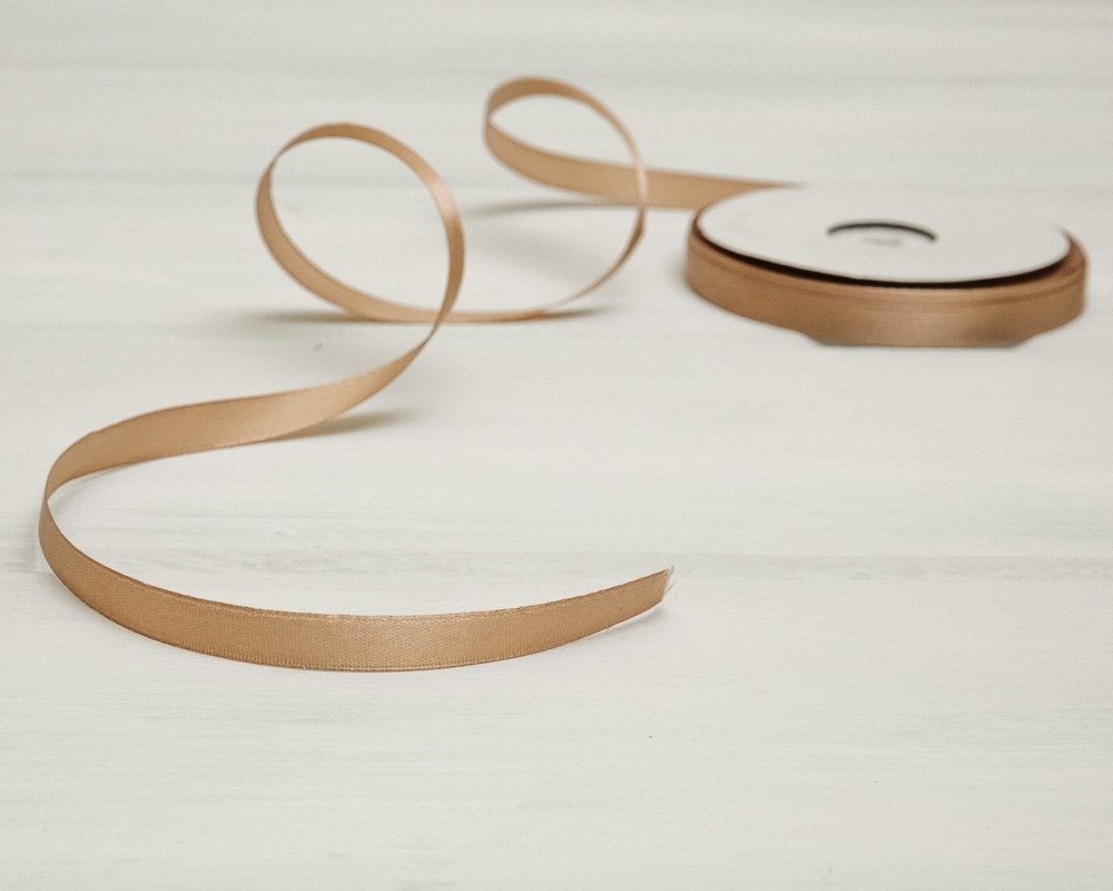 Лента атласная, 10 мм, светло-кофейная, 45 м