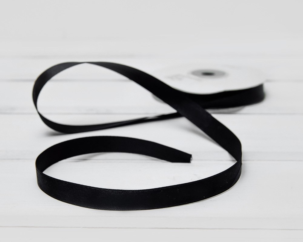 Лента атласная, 12 мм, черная, 22 м