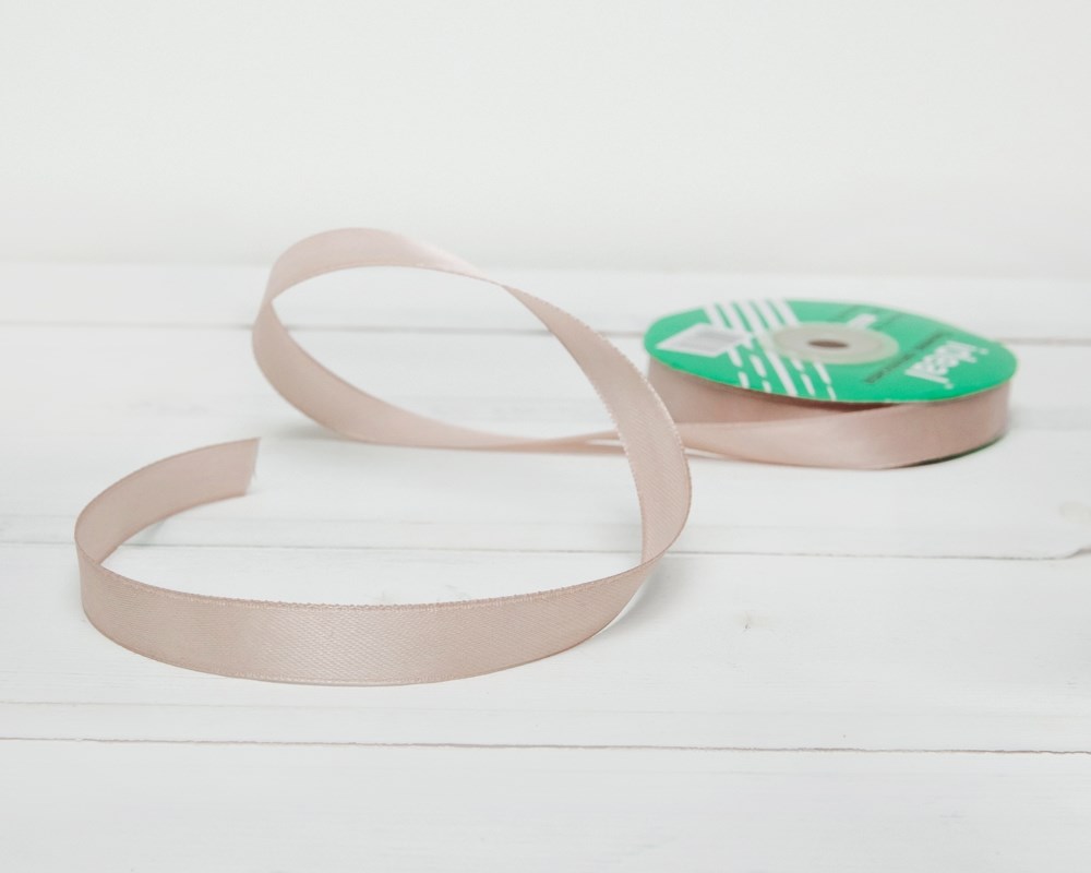 Лента атласная, 12 мм, пепельно-бежевая, 27 м