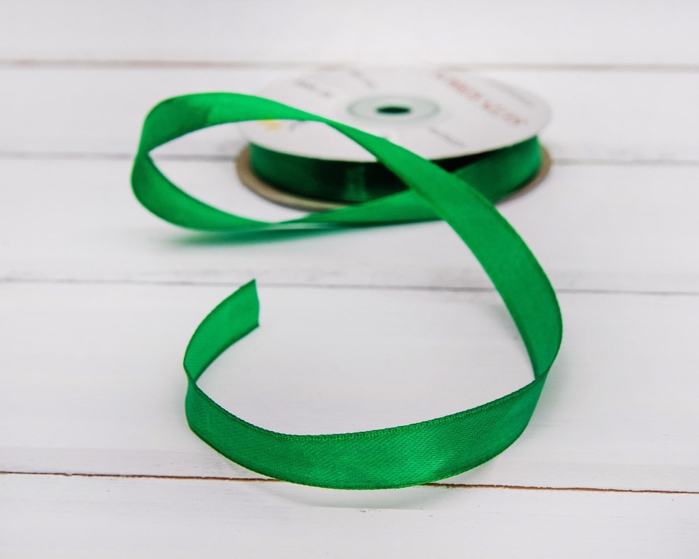 Лента атласная, 12 мм, зеленая, 1 м
