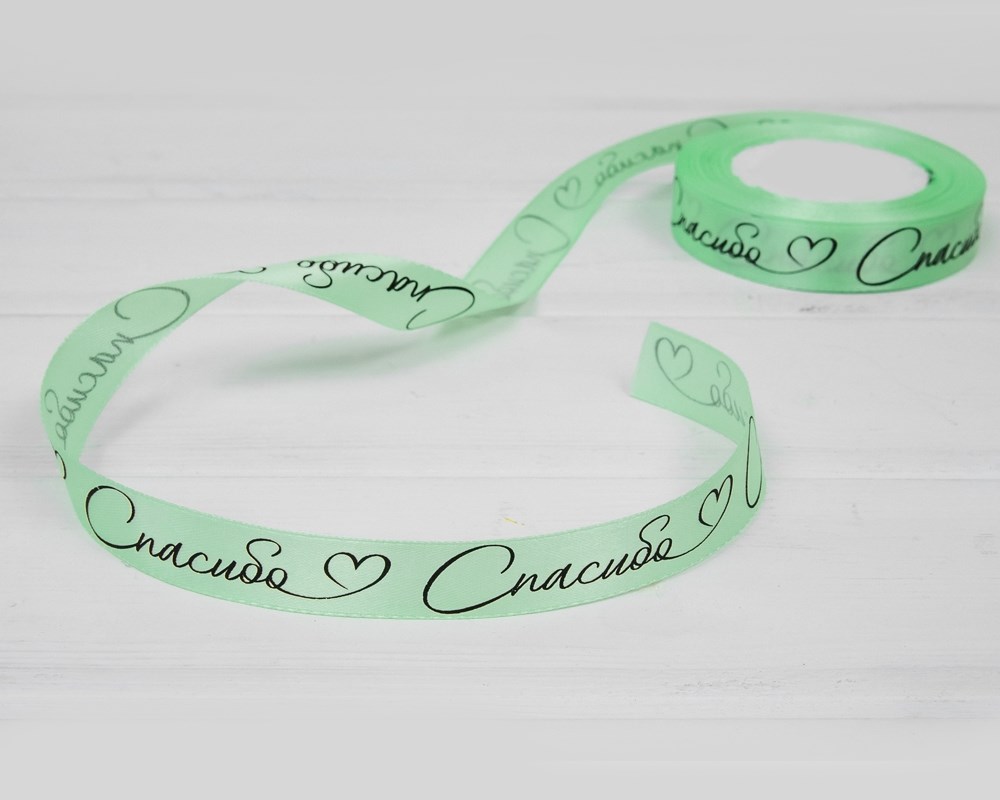 Лента атласная, 20 мм, «Спасибо», мятная, 22 м