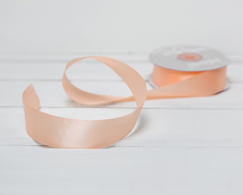 Лента атласная, 24 мм, розово-персиковая, 27 м