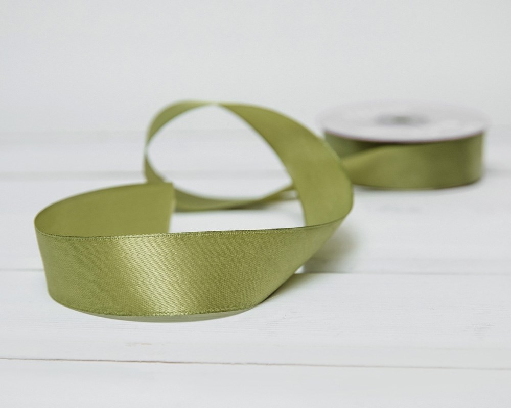 Лента атласная, 24 мм, темно-фисташковая, 1 м
