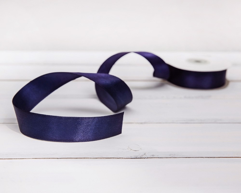 Лента атласная, 24 мм, темно-синяя, 27 м