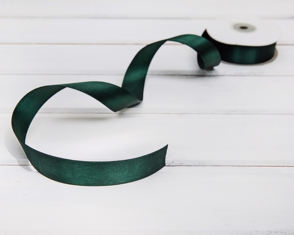 Лента атласная, 24 мм, темно-зеленая, 22 м