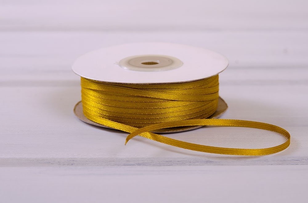 Лента атласная, 3 мм, золотая, 1 м
