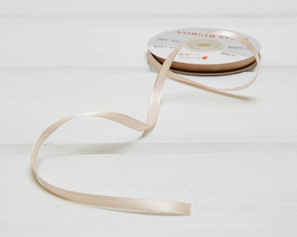 Лента атласная, 6 мм, слоновая кость, 27 м