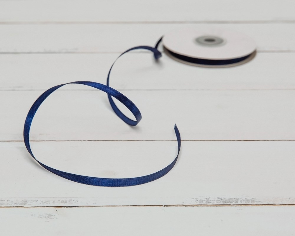 Лента атласная, 6 мм, темно-синяя, 22 м