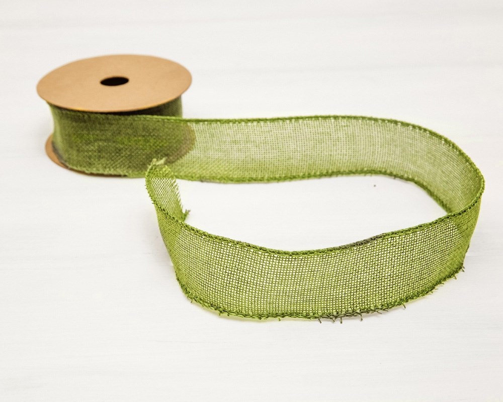 Лента джутовая 40 мм, оливково-зелёная, 1 м