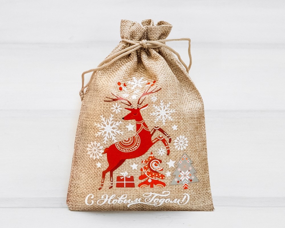 Мешочек подарочный из холщи с термонаклейкой «С Новым годом!», 12х17,5 см, цвет натуральный, 1 шт.