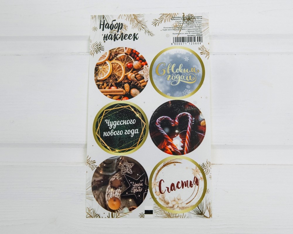 Наклейки «Чудесного Нового Года», круглые, d=4 см, лист 6 шт.