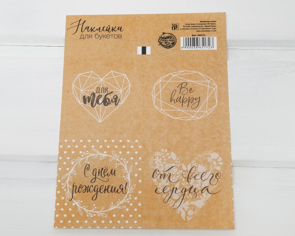 Наклейки можно использовать для украшения любой упаковки - коробки, букета цветов, пакета, баночек и т.п.